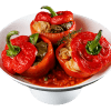 Кислая капуста(виноградный лист), свинина, рис, лук, морковь, томат. Подается в сладком перце со сметаной. Оформление заказа за 3 дня.