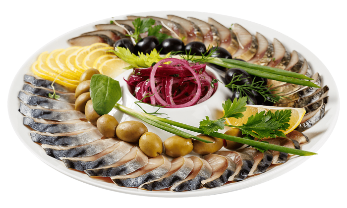 Скумбрия слабого посола, скумбрия подкопчённая, маринованный красный лук, оливки , маслины, лимон Оформление заказа за 3 дня.