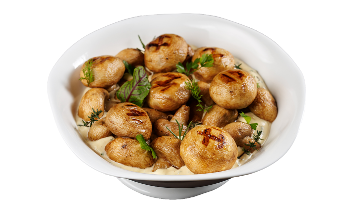 Шампиньоны гриль с соусом на основе, сметаны, сливок пряных трав и специй. Оформление заказа за 3 дня.