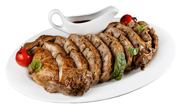 Утка фаршированная, грибным конкассе и сыром моцарелла, подается со смородиновым соусом. Оформление заказа за 3 дня.