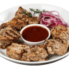 Шашлык из куриного бедра. Подается с соусом BBQ и маринованным красным луком. Оформление заказа за 3 дня.