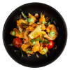 Микс салатной зелени, заправленный соусом sweet-chili, хрустящие шампиньоны с фирменной заправкой , мясистые томаты и моцарелла Буффало