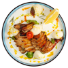 Цыплёнок запечённый с тимьяном и чесноком, подается со сливочным соусом и картофельным муссом с добавлением пармезана.